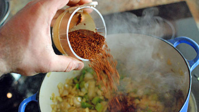 Step5Finally, slowly whisk in the masa harina to thicken the chili and add a nice corn flavor.