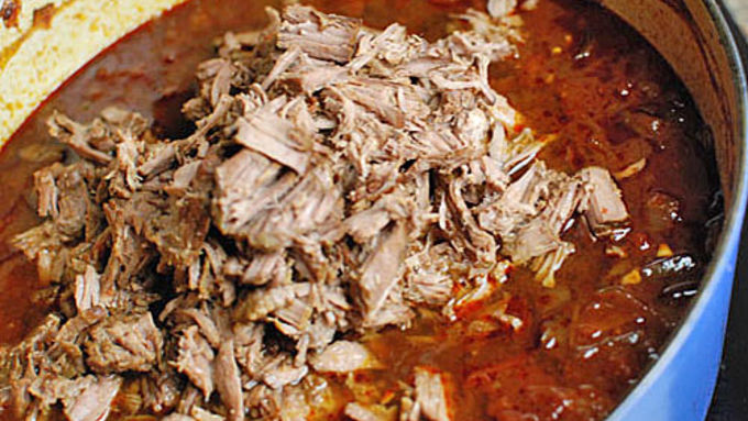 Step4Remove the pot from the oven and remove the beef from the pot. Shred up the beef and get rid of any fat. Place the shredded beef back into the pot and stir it up to mix well.