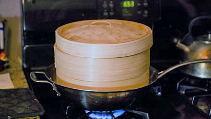 Step10Add the dumplings to a bamboo steamer, leaving some space between each dumpling to prevent them from sticking together, and steam them over a pot or wok until they are cooked through, about 18 minutes. To make sure the dumplings don't stick to the steamer, lightly oil the steamer or lay down some lettuce leaves in the bottom of the steaming racks.
