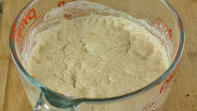 Step1To start dough, add starter ingredients in a small bowl. Stir together and let sit for 30 minutes until it foams.
