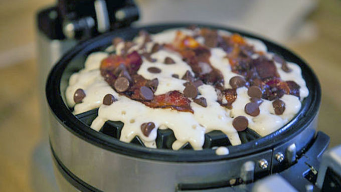 Crispy waffles made with Bisquick™ – and filled with crispy bacon and chocolate.