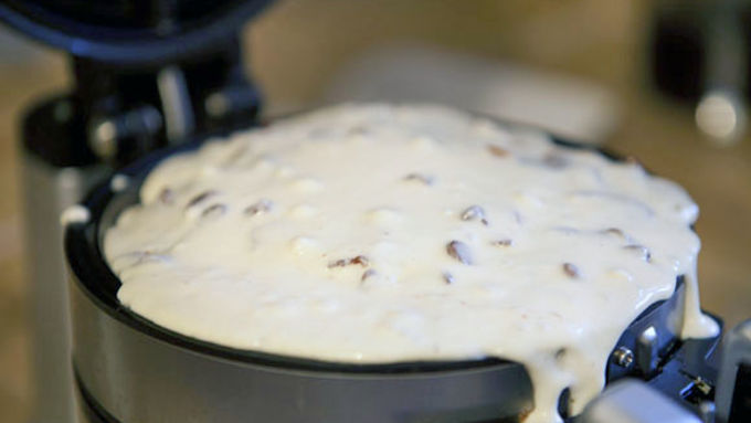 Step4Heat your waffle iron and add a thin layer of batter to the iron. The exact amount will vary depending on your iron model. I add about 1/3 cup of batter in my large iron.
