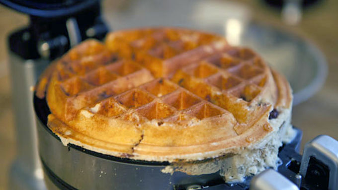 Step8Remove waffle and serve immediately with syrup and topped with extra chocolate chips!
