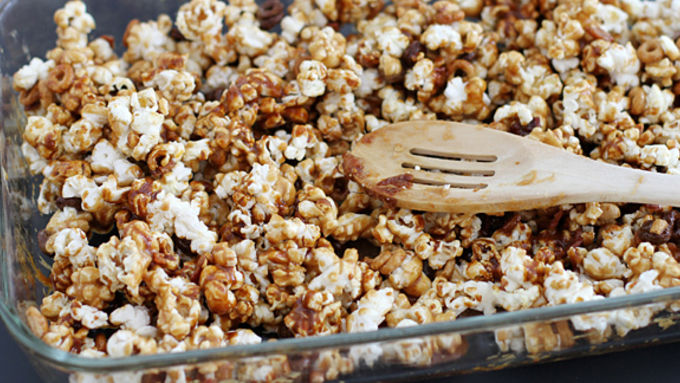 - This has to be the best caramel popcorn ever – with chocolate and (ready?) ... bacon! I have found the perfect way for you to celebrate National Caramel Popcorn Day – and every day, ever. It’s called Chocolate Caramel Bacon Popcorn, and it just might be the best thing I’ve ever made. For real. Here’s the thing: Bacon makes everything better. And most of us love caramel popcorn. And then, hello, chocolate. Combining them all into one delicious treat just makes sense. To review: Chocolate. Caramel. Bacon. Popcorn. Easy. Irresistible. OMGYUM. I think that about covers it.