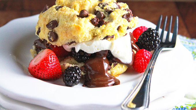 - Stop, drop and eat shortcake! These chocolate chip shortcakes with fresh berries may just be as good as life gets! When it comes to summertime desserts, you're likely sick to pieces of strawberry shortcake. But, darlin', that's because you haven't yet added chocolate chips to your shortcakes, then served them up with fresh mixed berries and an incredible chocolate sauce. There, there. Breathe. Take in a deep one. This revelation isn't one we're keeping to ourselves! It's all here in this Chocolate Chip-Berry Shortcakes recipe. Here's how to get a dish of this delish in your kitch pronto. Bisquick, yo. Grab it, nab it, get ready to fab it.Pile on berries. Lots and lots of fresh berries. No need to limit yourself here. Grab your favorites and decorate your shortcake like a charm. Chocolate sauce now. Drizzle it. Swizzle it. Then top it all with whipped topping. It's getting good all up in here! Now finish your shortcakes off with the top half of your sliced shortcake. Deliciously perfect in every way!