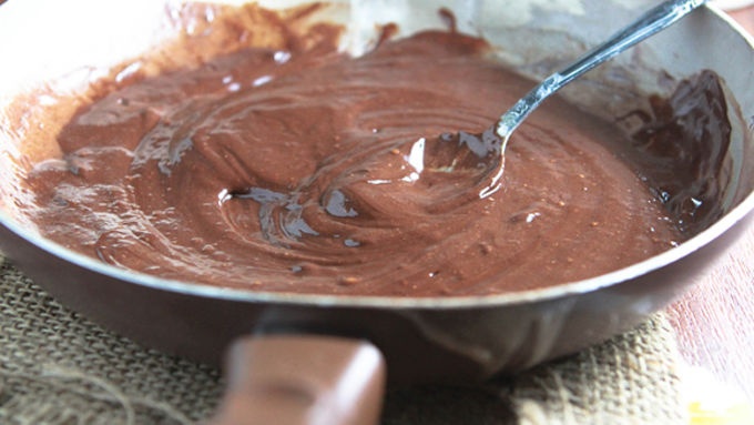 Step4In a small saucepan, melt together the remaining chocolate chips, Betty Crocker frosting, and half of the whipped topping over medium heat until smooth and melty.