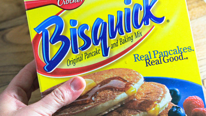 Step1Heat oven to 425°F. In medium bowl, stir together the Bisquick™, milk, sugar and the butter until soft dough forms. Add 1 cup of the chocolate chips to the batter. Sprinkle with a bit of extra Bisquick or flour and knead the chocolate chips into the dough.
