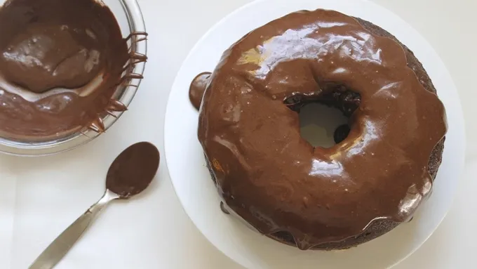 Step2Scoop chocolate frosting from the tub into a microwave-safe bowl. Microwave on high 15 to 20 seconds or just until the frosting is easily pourable but still thick. Generously spoon the frosting on the top of the cake, all around the inner circle, and let the frosting drip down the sides. You might not use all of the frosting. Let the frosting set for at least 30 minutes.