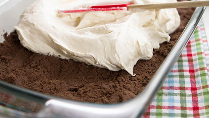 Spread final tub of whipped topping over the pudding layer.