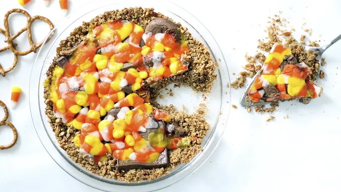 Step1Spray a standard-sized pie pan with nonstick baking spray. Set aside. In a small bowl, mix together crushed pretzels, melted butter, and sugar until well combined. Press mixture into the prepared pie pan, then place pan in freezer to chill for 10 minutes.