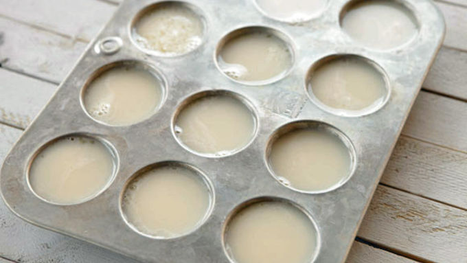Step3Pour mixture into mini muffin tins. You should get about 12 out of the amount of liquid. Chill in the fridge for four hours.