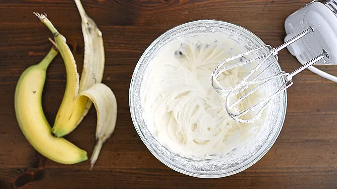 Step3While the cake is baking, make the banana filling: In a large bowl using an electric hand mixer, beat banana, butter, lemon juice, vanilla and salt until smooth. Add powdered sugar; mix well.
