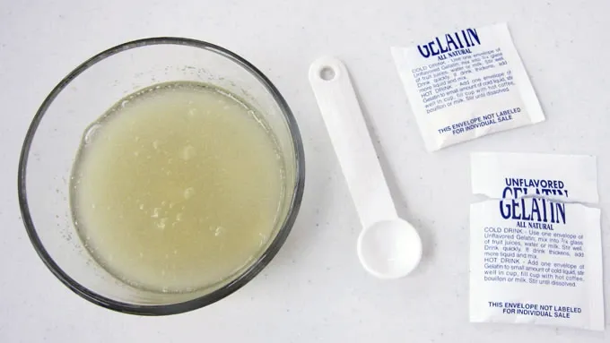Step3Strawberry Gelée: Pour 1/2 cup water into a small bowl and sprinkle gelatin over top. Set aside until ready to use.