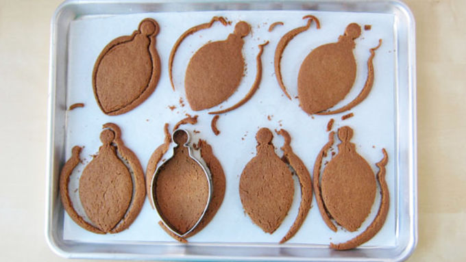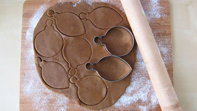Step1Follow instructions on the gingerbread cookie mix to make dough. Dust a cutting board with flour. Roll out dough and cut using ornament shaped cookie cutters. Re-roll as needed.