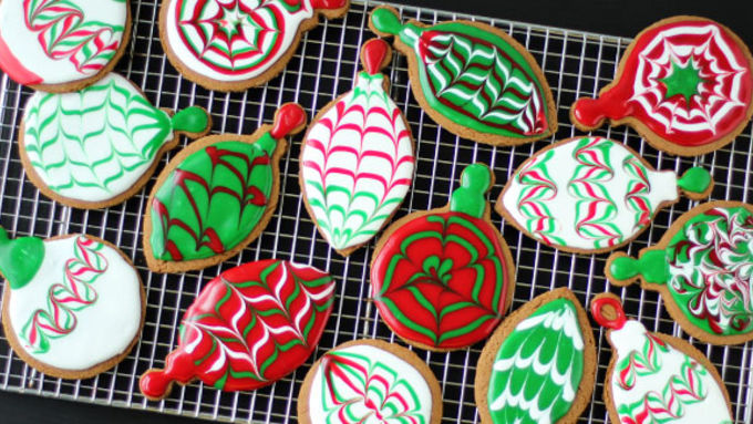 Easy gingerbread Christmas cookies decorated like pretty swirled ornaments for the holidays.