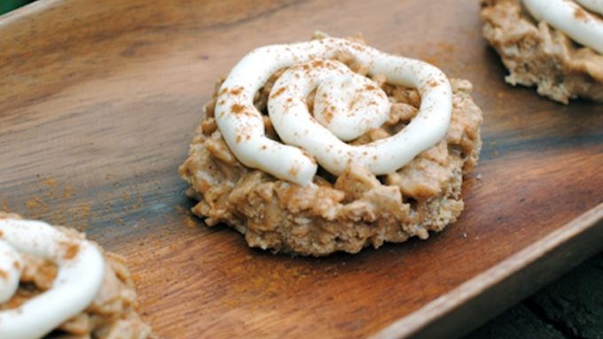 Step7Allow to cool completely, then pipe cream cheese frosting over tops of treats. Dust the tops lightly with cinnamon.