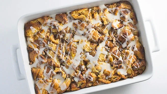 Cinnamon rolls go into full-on dessert mode with this easy twist on bread pudding.