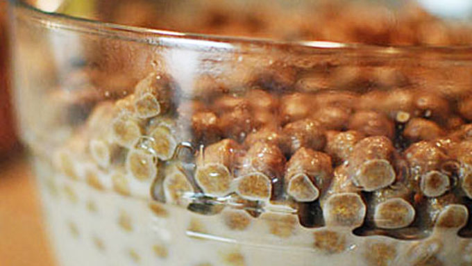 Step1Mix puffs and milk and let sit 25 minutes, stirring occasionally.