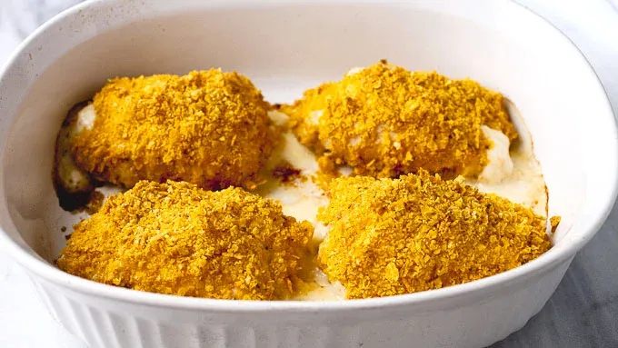 - The classic French Cordon Bleu with a Cool Ranch™ Doritos™ twist! Ahhh…chicken cordon bleu! That classic French dish that people seem to think is only worth ordering at restaurants. In reality, though, it’s totally doable at home. Once you get the hang of it, it doesn’t take long and you can coat the stuffed chicken in anything you want. For this version, I got a little wild by coating the cheese-stuffed chicken cutlets with crushed Cool Ranch™ Doritos™. (That’s right.) You’d be surprised how well these flavors go together! The best way to slice these so they stay together is with a good serrated knife. Good luck, and get your cordon bleu on!