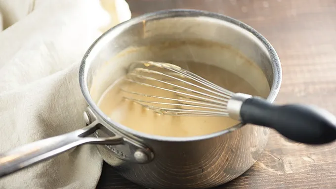 Step2While meatballs are cooking, prepare gravy. Melt butter in a small saucepan over medium heat. Whisk in flour and cook for 1 minute, stirring constantly. Whisk in beef broth and continue cooking, whisking constantly, until thickened, about 5 minutes. Remove from heat and stir in sour cream.