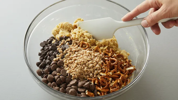 var configuration = {"title":"Copycat Panera™ Kitchen Sink Cookies","introduction":"Panera™ goes all out with its Kitchen Sink Cookies, so we took this challenge pretty seriously. Just look at that ingredient list! It\u0027s packed with chocolate chips, toffee bits, pretzels and topped with your fanciest flaky sea salt to finish it off. And trust us, it\u0027s totally worth it.","servingSize":"1 Cookie","image":{"small":{"media":"(min-width: 0px)","src":"https://mojo.generalmills.com/api/public/content/8ZyUCnIX2km93Q0yhzZ4dw_webp_base.webp?v=5e2db0f7\u0026t=e724eca7b3c24a8aaa6e089ed9e611fd"},"medium":{"media":"(min-width: 500px)","src":"https://mojo.generalmills.com/api/public/content/8ZyUCnIX2km93Q0yhzZ4dw_webp_base.webp?v=5e2db0f7\u0026t=191ddcab8d1c415fa10fa00a14351227"},"large":{"media":"(min-width: 767px)","src":"https://mojo.generalmills.com/api/public/content/8ZyUCnIX2km93Q0yhzZ4dw_webp_base.webp?v=5e2db0f7\u0026t=191ddcab8d1c415fa10fa00a14351227"},"alt":"Copycat Panera™ Kitchen Sink Cookies"},"contributor":{"label":"by:","name":"Tablespoon Kitchens","profileUrl":"/about-us","displayDate":{"label":"Updated","date":"Apr 18, 2019"}},"ingredientGroups":[{"ingredients":[{"quantity":"1","description":"cup butter, softened"},{"quantity":"1","description":"cup packed brown sugar"},{"quantity":"1/2","description":"cup granulated sugar"},{"quantity":"1","description":"teaspoon vanilla"},{"quantity":"1","description":"egg"},{"quantity":"2 1/4","description":"cups Gold Medal™ all-purpose flour"},{"quantity":"1","description":"teaspoon baking soda"},{"quantity":"1/2","description":"teaspoon salt"},{"quantity":"3/4","description":"cup semisweet chocolate chips or chunks"},{"quantity":"3/4","description":"cup milk chocolate chips or chunks"},{"quantity":"3/4","description":"cup chopped pretzels"},{"quantity":"1/2","description":"cup toffee bits"},{"quantity":"1/2","description":"teaspoon flaky sea salt"}]}],"steps":[{"description":"Heat oven to 350°F. In large bowl, beat softened butter, sugars, vanilla and egg with electric mixer on medium speed or with spoon until light and fluffy. Stir in flour, baking soda and salt (dough will be stiff). Stir in semisweet and milk chocolate chips, pretzels and toffee bits.","stepShotImageUrl":"//mojo.generalmills.com/api/public/content/GlllafoQdEurr7gt0ay1vw_webp_base.webp?v=1bbee0fd\u0026t=3653fe2f5ecd4a47a5a51c97e429947c"},{"description":"On ungreased large cookie sheets, drop by rounded 1/2 cupfuls of dough 4 inches apart. Flatten slightly. Sprinkle a few salt flakes on top of each cookie.","stepShotImageUrl":"//mojo.generalmills.com/api/public/content/cpuShJgO-UGOOgMmwlA8Fw_webp_base.webp?v=725b0668\u0026t=3653fe2f5ecd4a47a5a51c97e429947c"},{"description":"Bake 13 to 16 minutes or until light brown around edges (centers will be soft). Cool 5 minutes; remove from cookie sheet to cooling rack. Cool completely."}],"tips":[{"title":"","description":"Caramel bits can be substituted for toffee bits in this recipe.","category":"Substitution","tipShots":[]},{"title":"","description":"While any pretzel will work in this recipe, pretzels with a waffle pattern, coarsely chopped, give the cookie a fun look.","category":"Recipe/Ingredient Facts","tipShots":[]},{"title":"","description":"Sprinkling a little flaky sea salt on top of the cookies brings out the chocolate flavor and tones down the sweetness.","category":"Recipe/Ingredient Facts","tipShots":[]},{"title":"","description":"If you don’t have flaky sea salt, coarse sea salt will work.","category":"Recipe/Ingredient Facts","tipShots":[]},{"title":"","description":"Kitchen Tested - 1/2019","category":"Kitchen Tested","tipShots":[]}],"kitchenTips":[{"title":"","description":"Caramel bits can be substituted for toffee bits in this recipe.","category":"Substitution","tipShots":[]},{"title":"","description":"While any pretzel will work in this recipe, pretzels with a waffle pattern, coarsely chopped, give the cookie a fun look.","category":"Recipe/Ingredient Facts","tipShots":[]},{"title":"","description":"Sprinkling a little flaky sea salt on top of the cookies brings out the chocolate flavor and tones down the sweetness.","category":"Recipe/Ingredient Facts","tipShots":[]},{"title":"","description":"If you don’t have flaky sea salt, coarse sea salt will work.","category":"Recipe/Ingredient Facts","tipShots":[]}],"additionalContent":[],"faq":[],"tipCategories":[{"categoryName":"Kitchen Tested","heading":"More About This Recipe","cssClass":"recipePartStory","expandOnInit":false,"expandText":"More +","collapseText":"Less -","expandEventName":"","collapseEventName":"","image":"","tips":[{"title":"","description":"Kitchen Tested - 1/2019","category":"Kitchen Tested","tipShots":[]}],"isExpandable":false}],"nutritionInfo":{"configuration":{"showAsTable":false,"noNutritionInformationAvailableMessage":"No nutrition information available for this recipe","poweredByText":"\u003cp\u003eNutrition information for this recipe is estimated using a leading nutrition calculation application, but is an estimate only. Actual nutrition values will vary based on the exact ingredients or brands you may use.\u003c/p\u003e\n\u003ca href=\u0022http://developer.edamam.com\u0022\u003ePowered By \u003cimg src=\u0022-/media/ABEEFB1BF16C40AEB5775A3BE02315EA.ashx\u0022 alt=\u0022Edamam\u0022 /\u003e\u003c/a\u003e","nutritionChartTitle":"Nutrition Facts","nutritionInformationLabel":"Nutrition","servingSizeText":"Serving Size:","dailyValuesDisclaimer":"*Percent Daily Values are based on a 2,000 calorie diet.","percentDailyValueText":"% Daily Value","percentDailyValueFooterTitleText":"% Daily Value*:","exchangeInformationTitleText":"Exchanges:","nutritionFactsExpandText":"More Nutrition","nutritionFactsCollapseText":"Less Nutrition"},"facts":{"carbohydrateChoice":{"amountPercent":"","amountUnits":"6 1/2","title":"Carbohydrate Choice"},"vitaminA":{"amountPercent":"15%","amountUnits":"15%","title":"Vitamin A"},"vitaminC":{"amountPercent