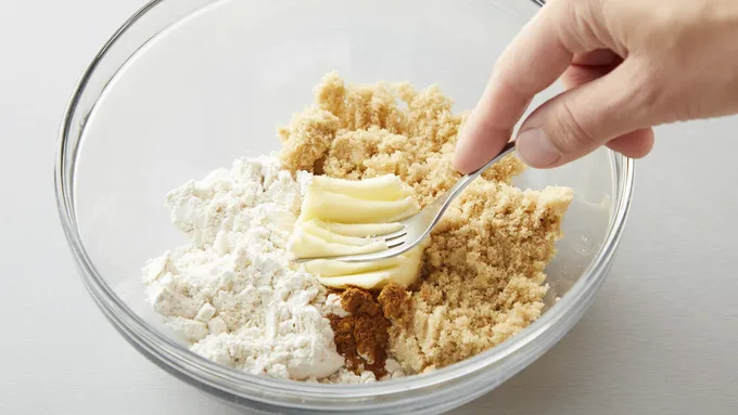 Meanwhile, in medium bowl, stir Streusel ingredients with fork until crumbly.