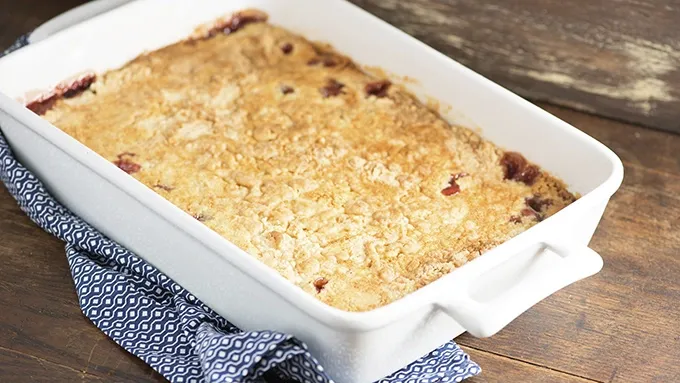 - So, look. We can’t all be master chefs. Some of us need a little help in the kitchen. It’s cool. I get it. You don’t have a fancy mixer or maybe you just don’t have the time or money to be whipping up some gourmet cake. But you really want cake. Because cake. I’m here for you. Let’s fake our way through this master cook thing. It’s dump cake time. The name is terrible, but the cake itself is amazing. Perfect for eating by yourself on the couch. But also perfect for serving your friends. And since this particular dump cake is all fancy and festive with cranberries, you could even bring this to Thanksgiving dinner if you wanted to be a good guest. All you need is a couple cans of cranberry sauce, a box of cake mix, and some butter. If you wanted to top this with some vanilla ice cream, I would super approve.