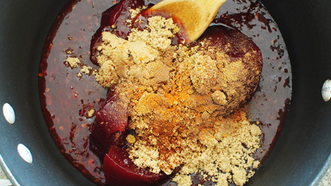Step1Combine the cranberry sauce, chili sauce, brown sugar, cumin, chili powder and allspice in a large pot. Set to a medium heat and cook until the sugar has dissolved and the mix begins to bubble.