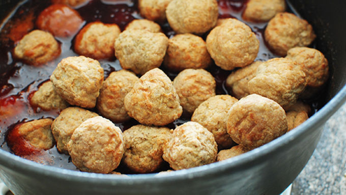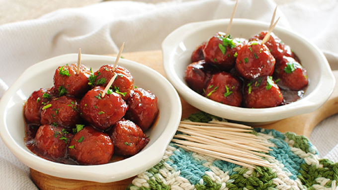 These meatballs are dressed for the season with a sweet and spicy sauce.