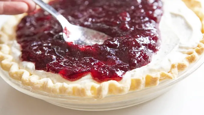 - This pie is a deliciously simple way to make an all-new treat that feels like a familiar old friend. The holidays are tip-toeing their way into our lives, once again. Time to all friends and invite them over for a feast. And because you like tradition, but always prefer to put a surprising twist on the table, this pie is about to take center stage on your dessert table. This is WORLD’S BEST PIE FILLING IN THE WOLRD. Tangy! Sweet! Like cheesecake, only without the cheese. And so much creamy sour cream, your heart will pucker. Which doesn’t sound like a good thing, but it totally is. When you come to preparing the topping, you’ve got two options. Making it around November? Grab some fresh or frozen cranberries to whip up the topping. Can’t find those fresh picked berries? No worries. A can of whole berry cranberry sauce proves to be a loverly alternative. With all the classic flavors of fall and thanksgivingness and party time cheer, this pie is a deliciously simple way to make an all-new treat that feels like a familiar old friend. When the time for dessert has come, grab a pie slicer and heap yourself a happy slice. A touch of sweet, a smidgen of sour, a whole forkful of soo, sooo good. Enjoy!