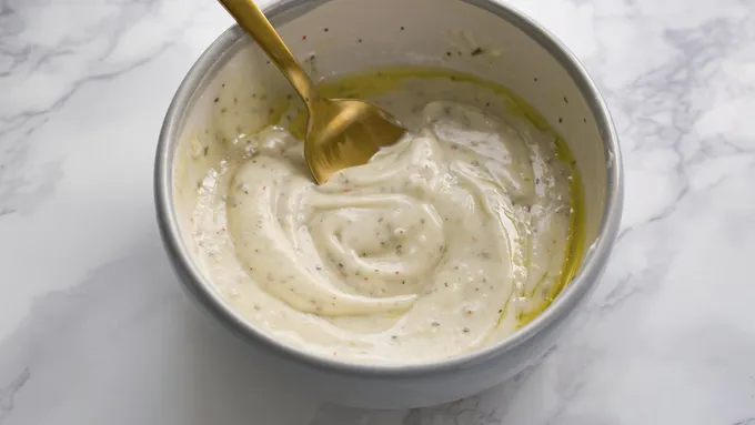 Step2In a small bowl, mix together spice packet, mayonnaise, vinegar and olive oil.