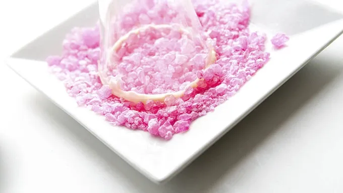 Step2Melt white chocolate chips in a small bowl. Dip the top of 8 champagne glasses into the white chocolate, then press into crushed candies to rim. Allow to cool and harden.