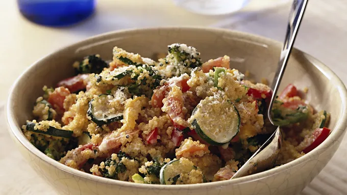 Step3Toss vegetables and quinoa mixture. Sprinkle with Romano cheese.