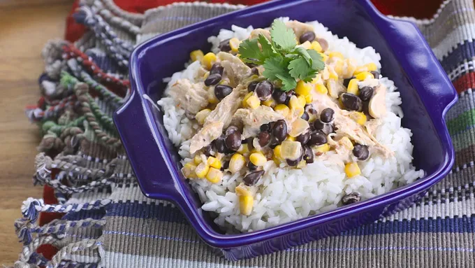 Step1In the bowl of a 6-8 quart slow-cooker, combine chicken, ranch mix, Old El Paso™ taco seasoning, black beans, corn, green chilies and cream cheese. Give everything a little stir, cover and cook on Low for 6 hours or on High for 4 hours.
