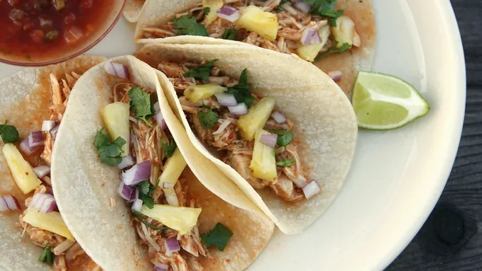 Serve the shredded chicken over warmed tortillas. Enjoy!