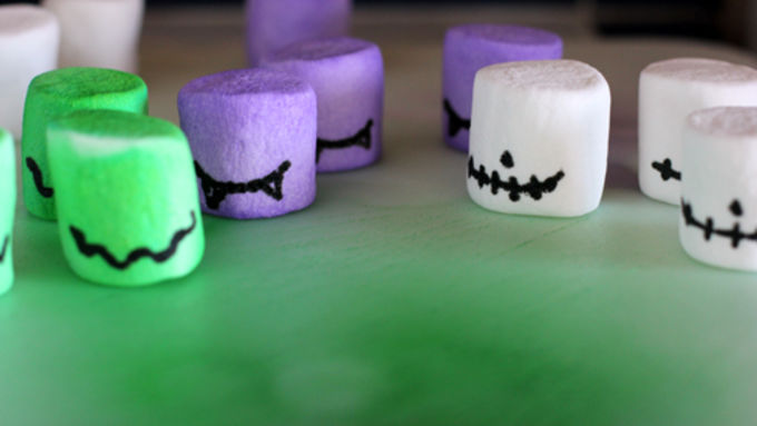 Step4Use the marker to draw faces on each of your marshmallows.