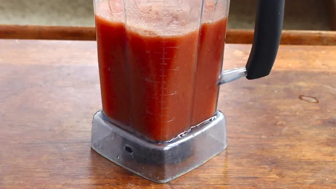 Step3While the chicken is baking, prepare the risotto. First place the broth, salt and fire-roasted tomatoes in a blender and blend until smooth. Place in a stockpot and heat until hot. Keep it hot.