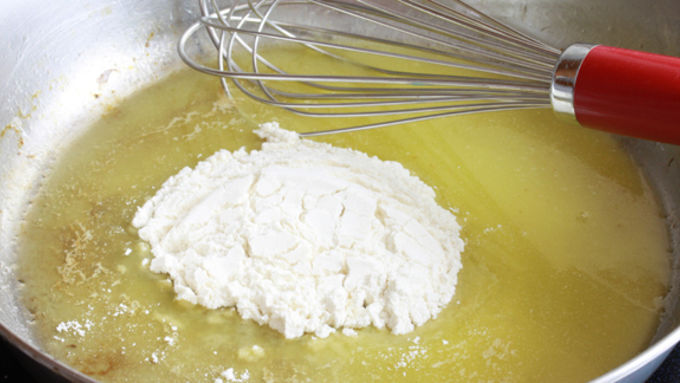 Step3In the same skillet, melt the butter, add the flour, and whisk until the flour is dissolved. Continue to whisk constantly until the mixture is a rich, deep golden brown, about 3-4 minutes.