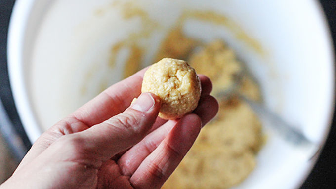 Step3Meanwhile, in a separate bowl, stir together the matzo ball mix, vegetable oil and eggs until combined. Refrigerate for 15 minutes to chill. Then remove and shape the mix into 1-inch balls.