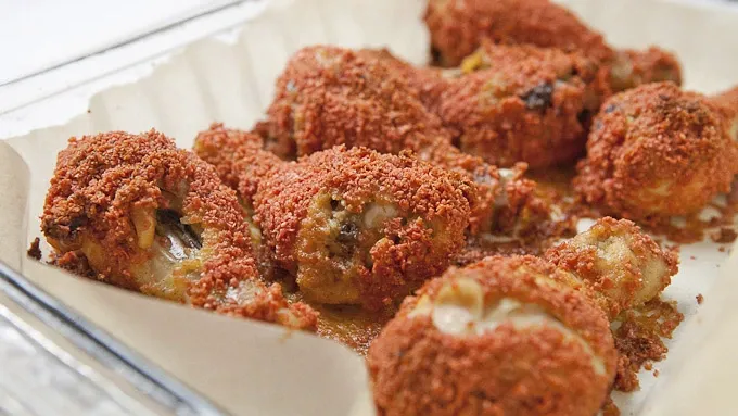 Chicken drumsticks coated with jalapeno chips and baked to a crispy crunch.