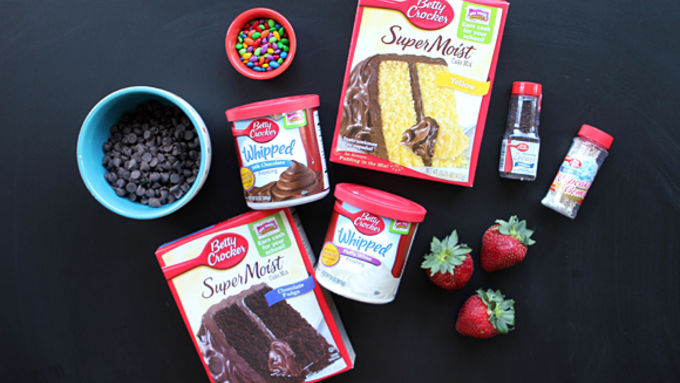 - 1 cup from 1 box Betty Crocker™ Super Moist™ Chocolate Fudge Cake Mix
