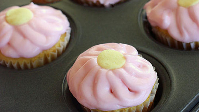 Step3Frost cupcakes using the leaf tip on the icing bottle. You can make a swirl shape or make petals. Place one jumbo sprinkle in the middle if desired. *You can also just decorate the cupcakes using your own frosting. You can fill a plastic bag with your own frosting, cut of the the end, and pipe a flower or cone shape.