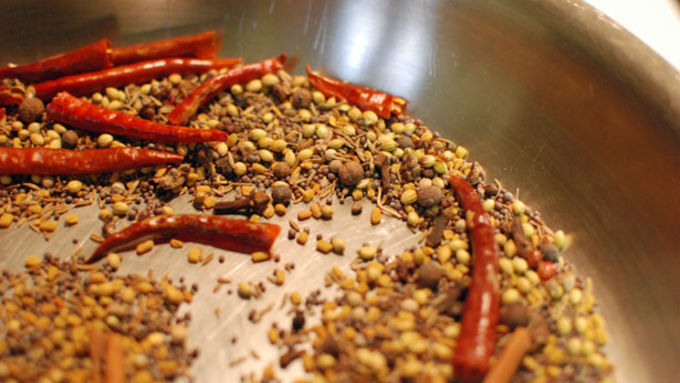 Step1Toast Spices (except for turmeric) in a dry frying pan.