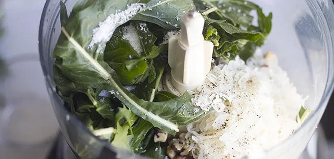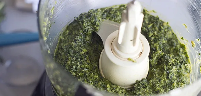Step3If using on pasta, remember to save some of the pasta water and add a little at a time with pesto so it helps coat the pasta a little better.