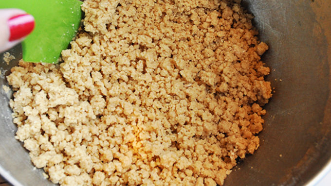 Step1In a stand mixer, cream softened butter with the brown sugar. Add salt, vanilla and 1 tbsp milk, and mix until well blended. Add flour and mix until mixture forms coarse crumbs that stick together. (Add additional 1 tbsp milk if needed.)