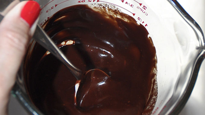 Step5Add filling ingredients (dark chocolate chips, shortening, corn syrup, water, and cherry juice -- NOT maraschino cherries) to a microwave-safe dish. Micro on high for 20 seconds. Stir and micro again another 10 seconds. Mix chocolate until silky smooth. Return to micro 5 seconds at a time if necessary.