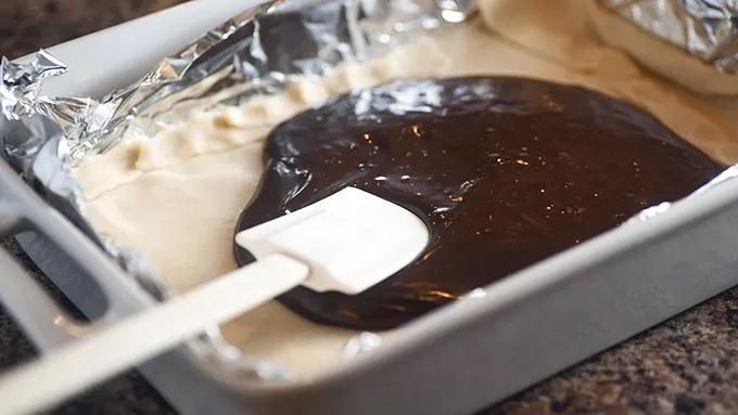 Step7Bake for 28 minutes. Remove from the oven and sprinkle the remaining 1-cup of chocolate chips over the bars and return to the oven for 2 more minutes.