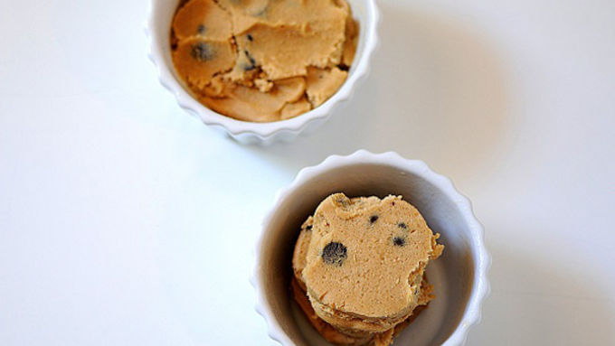 Step3Press the cookie dough evenly and firmly into the bottom of the ramekins, covering the entire bottom. Do this for all four ramekins.