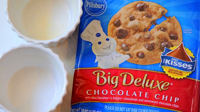- Three cookies -- one dish -- one awesome delish dessert! One thing I love about Deep Dish Chocolate Chip Cookies, other than the obvious fact that they are chocolate chips cookies, is that it’s like having three cookies in one…but it’s okay because it’s only one dessert. So you get away with eating three cookies for the price of one. Yay! There is nothing better than a chocolate chip cookie fresh and hot from the oven. Deep Dish Chocolate Chip Cookies because they are baked in a ramekin they are the perfect size for a scoop of ice cream on top! Of course this could be made with any kind of cookie dough so the possibilities are pretty much endless: Oatmeal Raisin with cinnamon ice cream, Sugar Cookie with cake batter ice cream, Peanut Butter with chocolate ice cream. See lots of options! Sprinkle with chocolate chips on top -- and enjoy!