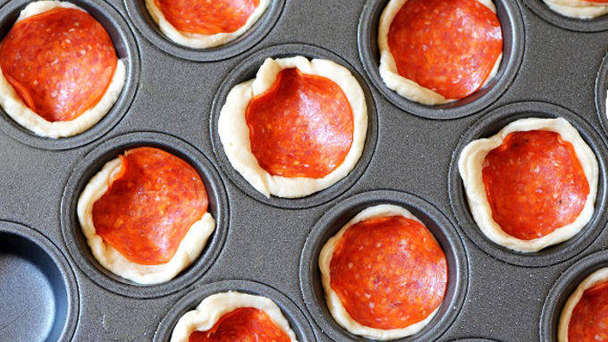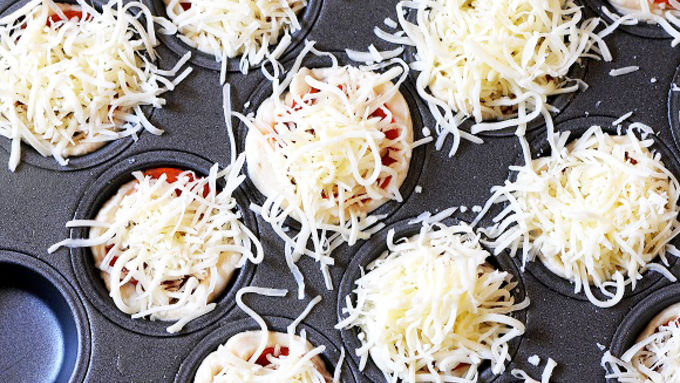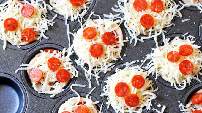 One-bite pizzas made in mini muffin tins are great for game day apps or grab-and-go snacks.